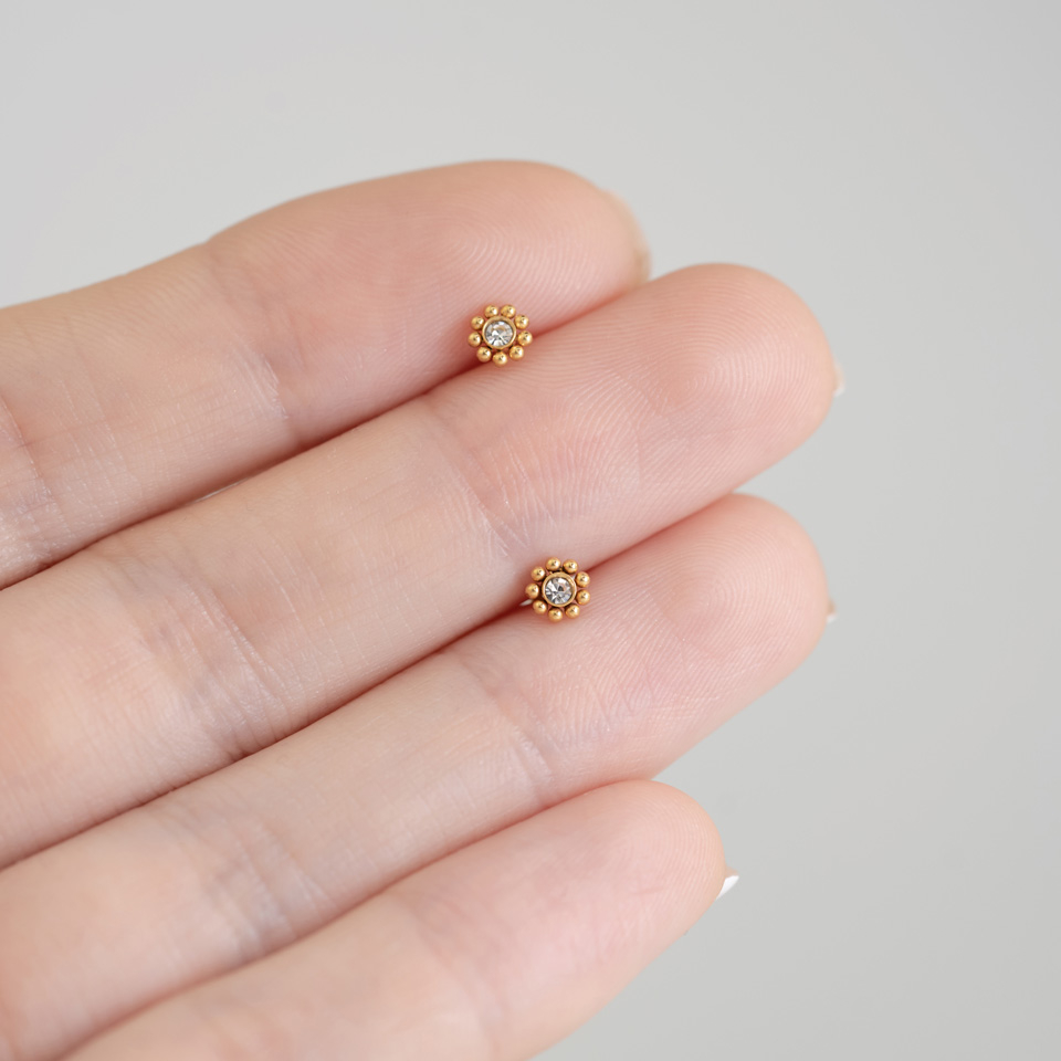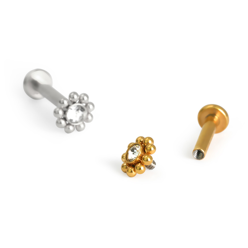 Jede Variation kommt außerdem mit einem hübschen kleinen Stein auf der Vorderseite des Schmucks. Das besondere dieses Piercings ist das Innengewinde, dieses hat gegenüber zu einem Außengewinde den Vorteil, dass deine Haut beim Einführen des Piercings nicht zerkratzen kann.