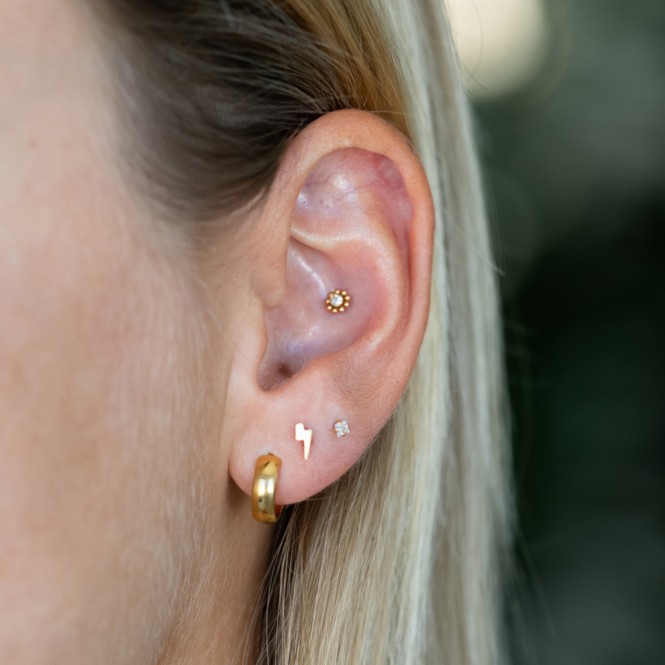 Platzierung: Tragus, Spiderbite, Snakebite, Medusa, Madonna, Lower labret, Ohrläppchen, Helix, Conch, Forward helix, Angelbite