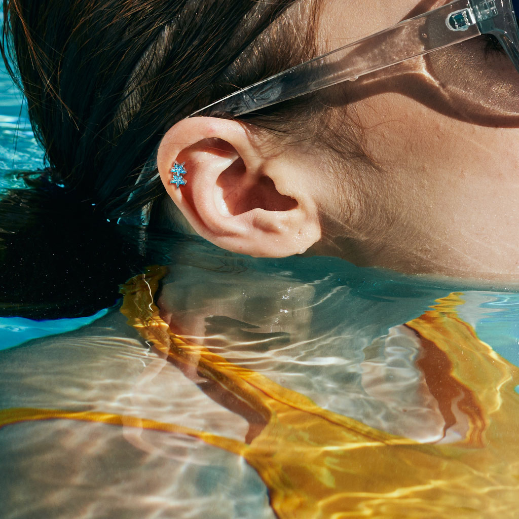 Aufgrund der Metallzusammensetzung und/oder der Verarbeitung dieses Schmucks ist er schadensanfällig bei Kontakt mit Wasser und Schweiß.