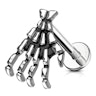 Ein Labret wird normalerweise durch einen geraden Stab und einer festen Platte definiert. Dies ist auch hier der Fall, jedoch befindet sich oben keine normale Kugel, wie es bei den meisten Labrets gängig ist. Bei diesem Piercing wurde die Kugel durch eine Hand ersetzt - eine Skeletthand um genau zu sein.