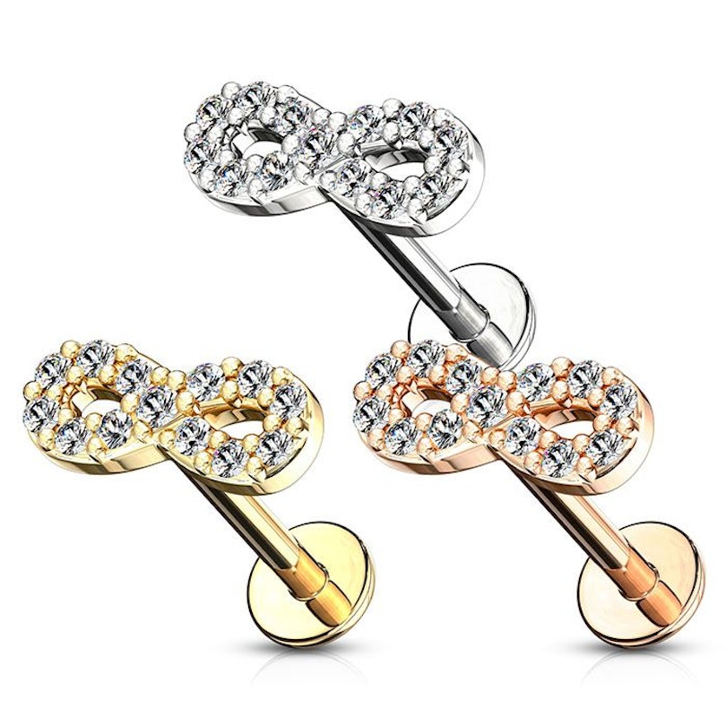Labret mit steinbesetztem Unendlichkeitszeichen und Innengewinde