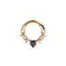 Dieser nach vorne gerichtete Ring weist ein Stacheldrahtdesign mit einem schwarzen herzförmigen Edelstein in der Mitte auf. Da er mit einem Scharnier versehen ist, lässt er sich leicht in deinem Piercing befestigen.