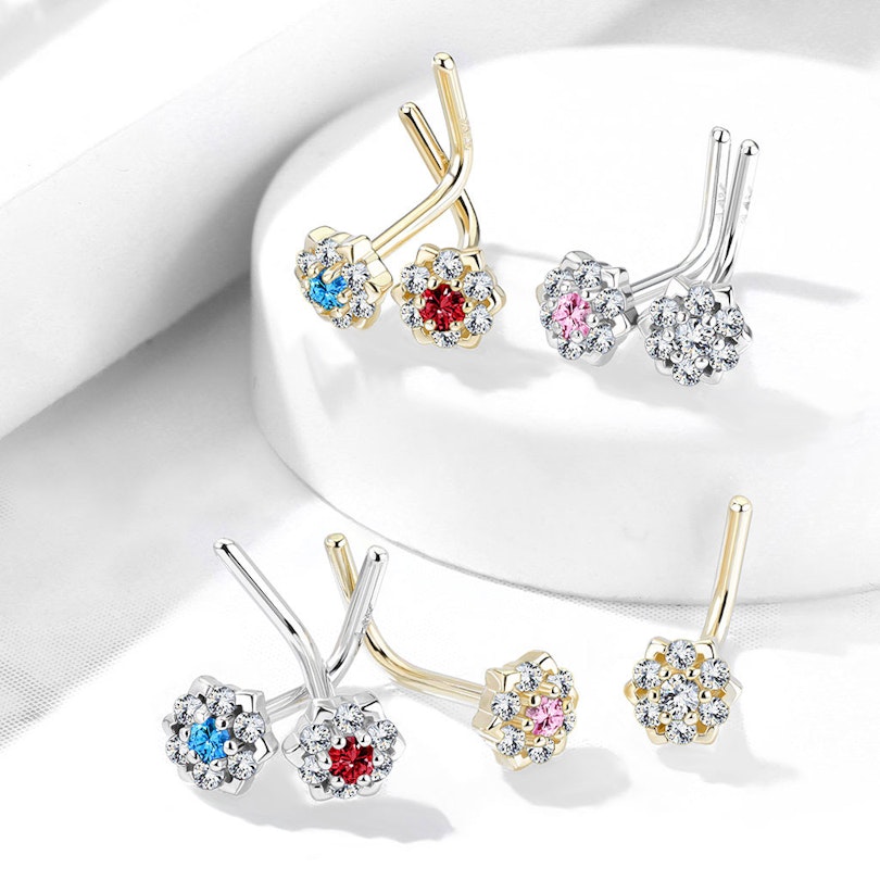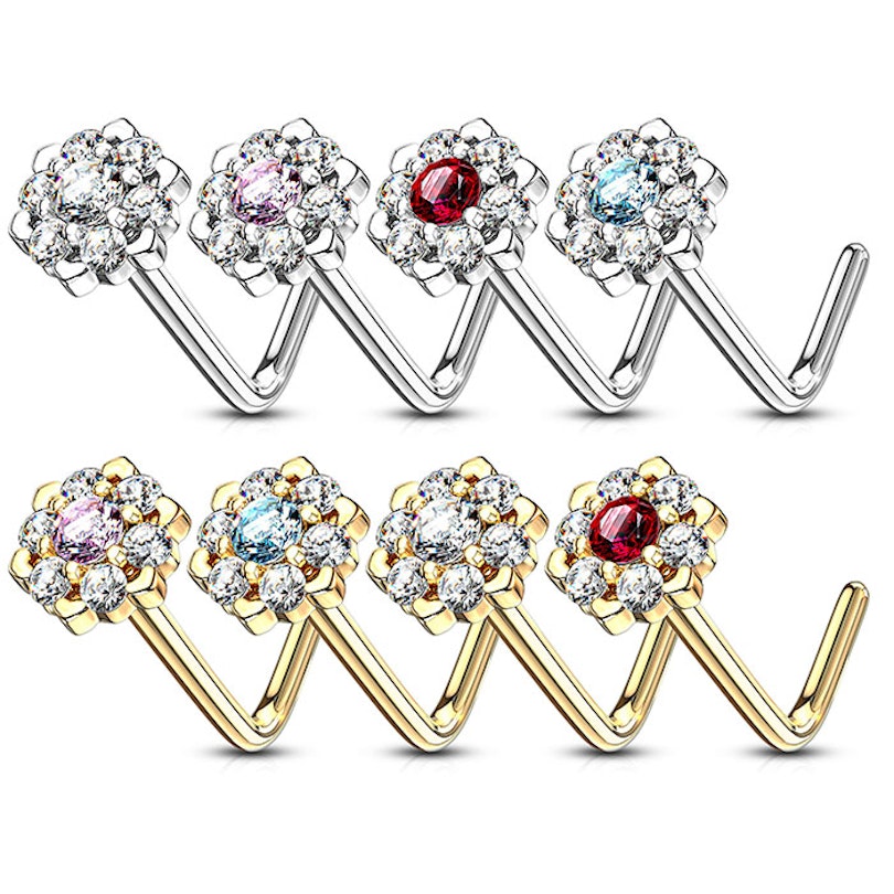 Name: Nasenpiercing aus 14 Karat Gold mit steinbesetzter Lotusblume