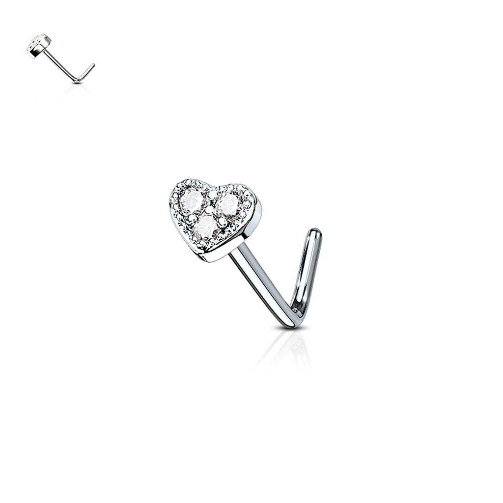 Name: Nasenpiercing mit Herz und drei Steinen