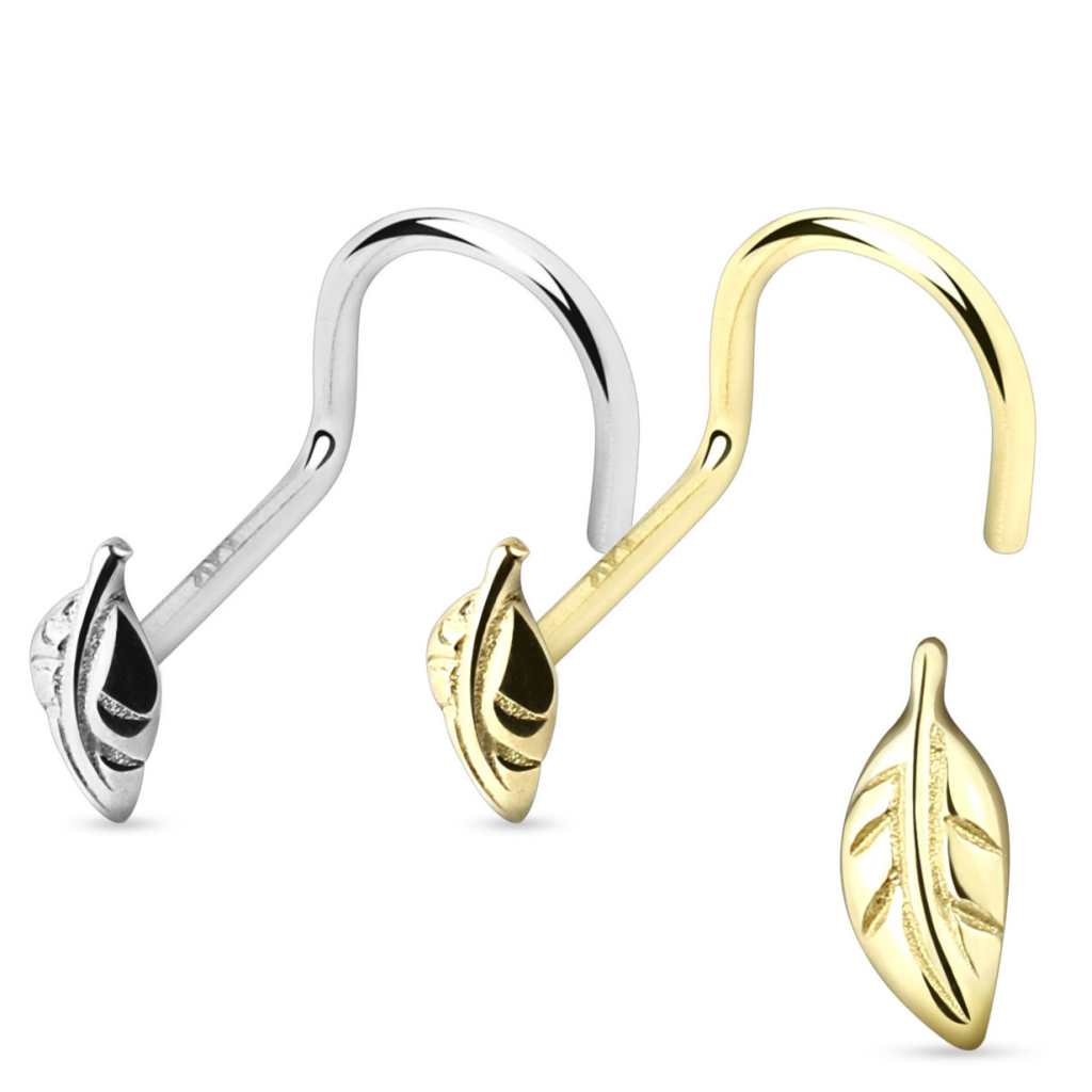 Nasenschraube aus 14 Karat Gold mit einem Blatt