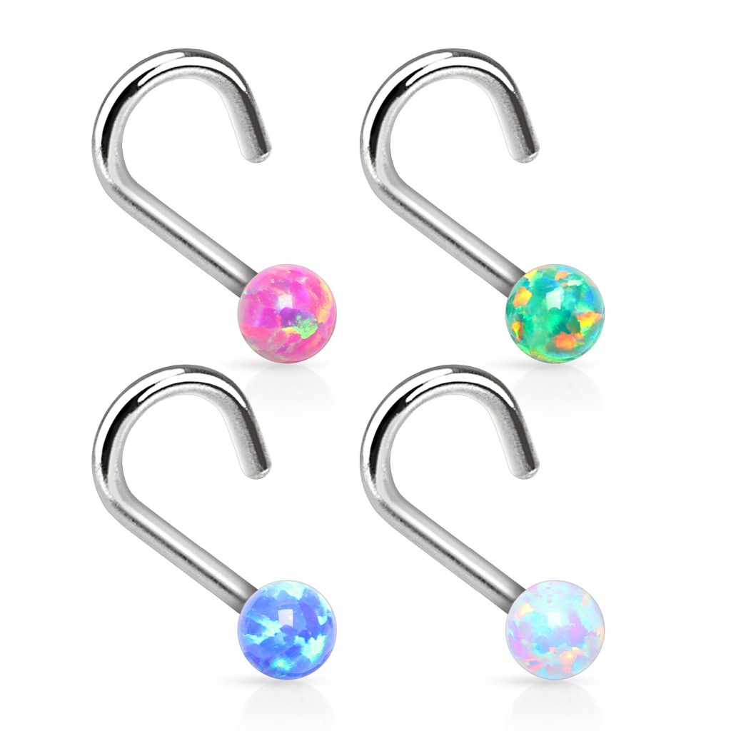 Hier kannst du eine schöne und praktische Nasenschraube mit einem wirklich schönen Opalsteini bekommen, welche mit Sicherheit für viel Aufmerksamkeit sorgen wird. Der kleine Opalstein ist ca. 2 mm und kugelrund. Du kannst zwischen vier verschiedenen Farben wählen: weiß, rosa, blau und grün. Jeder Stein ist ein Unikat und keine zwei Steine werden wirklich identisch sein, da diese reine Naturprodukte sind. Opal soll auch viele verschiedene Eigenschaften fördern bzw. stärken zb. innere Ruhe, Inspiration, Lieb und Frieden. Wenn also nicht schon das schöne Aussehen des Steines der Grund ist, dir einen zu bestellen, dann vielleicht eine der positiven Eigenschaften.