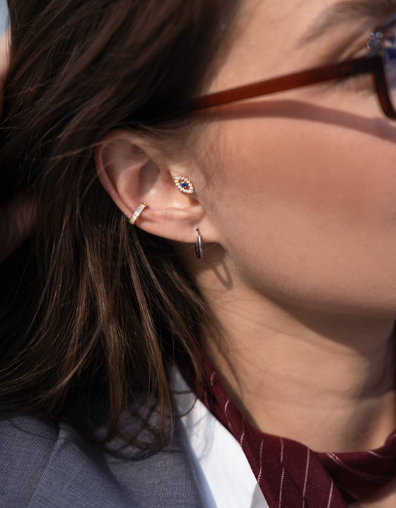 Hergestellt aus Titan, ist er hypoallergen, wasserfest und kann bei richtiger Pflege ein Leben lang halten. Der L-förmige Stift ist einfach, bequem und sicher genug, um ohne viel Aufhebens an Ort und Stelle zu bleiben.