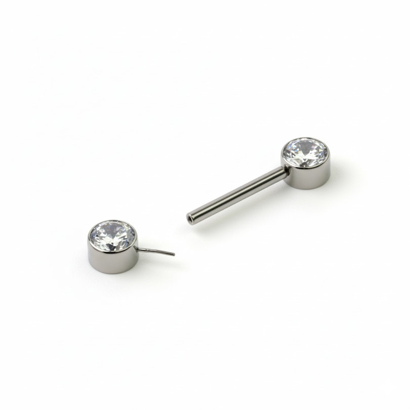 Name: Nippel-Barbell aus Titan mit gewindelosen, eingefassten Steinen
