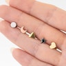 Ich habe einen Mond und direkt danach einen Stern und ein Herz bestellt. Daraus entstand eine schöne Einheit für das Ohr. Die Kanten des Mondes und des Sterns sind scharf, aber sie haben mich beim Schlafen nicht gestört, ebenso wenig wie die Kugelrückseite des Schmucks.