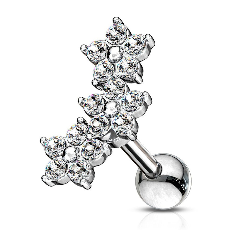 Name: Ohrpiercing mit drei Blumen in einer Reihe