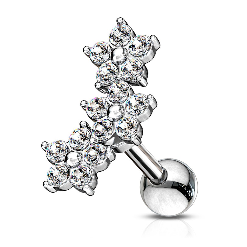 Ohrpiercing mit drei Blumen in einer Reihe