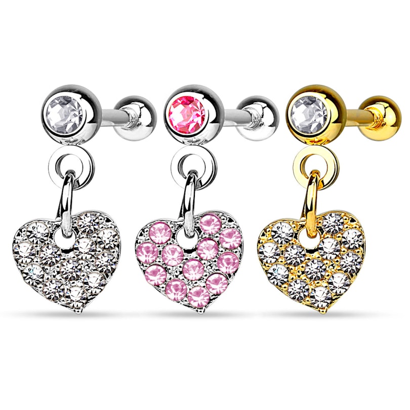 Name: Ohrpiercing mit einem steinbesetzten Herzanhänger