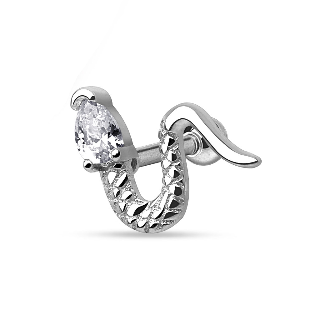 Trage diese schlängelnde Schlange für dein Tragus-, Helix- oder Ohrläppchenpiercing, denn für alle diese Piercings ist der Schmuck richtig gut anwendbar.