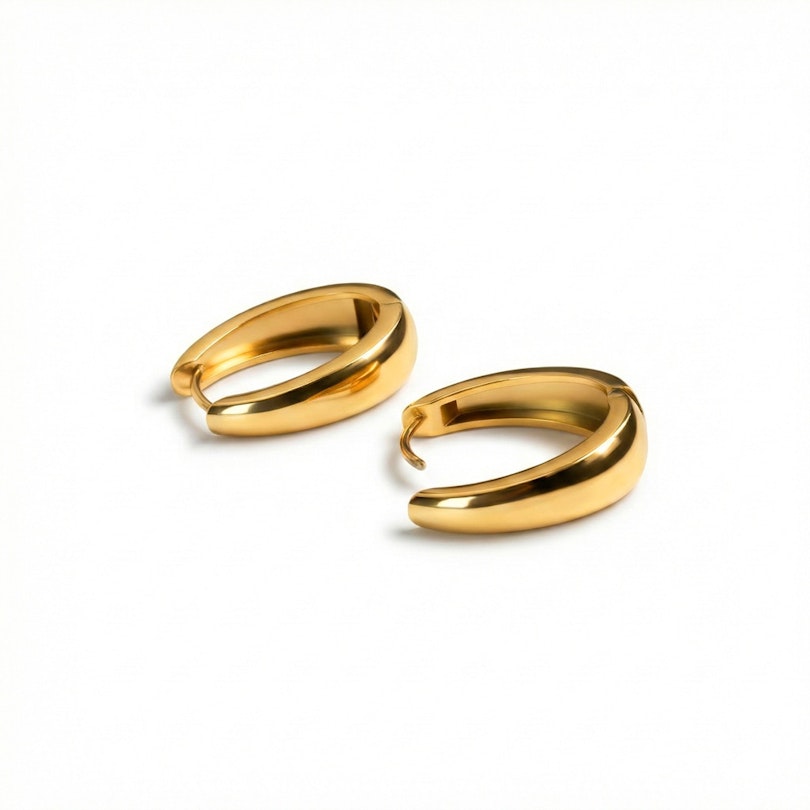 Bist du auf der Suche nach Ohrringen mit einem gewissen Etwas? Diese ovale Ohrringe sind genau das Richtige. Sie bestehen aus beständigem Chirurgenstahl und sind in den klassischen Ausführungen Silber oder Gold erhältlich. Das einzigartige ovale Design ist unten etwas breiter und verleiht deinem Look eine frische Note. Und dank des einfachen Scharnierverschlusses sind sie kinderleicht zu tragen. Sie werden als Paar verkauft und sind sofort bereit, deine Ohren zu bereichern.