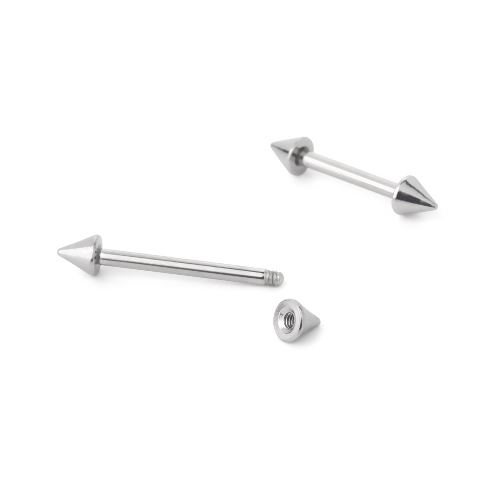 Pimpe dein Piercing mal mit einem ganz anderen und markantenLook auf und bestelle diesen coolen Piercingstab, der an den Enden spitze Spikes anstelle klassischer Schließkugeln hat. Meistens wird nämlich nur ein Stab mit den schlichten, runden Schließkugeln verwendet, wenn man nur ein einfaches Piercingdesign wünschen. Aber jetzt kannst du das Schlichte mit etwas Markanten kombinieren und dich damit ein wenig abzuheben.