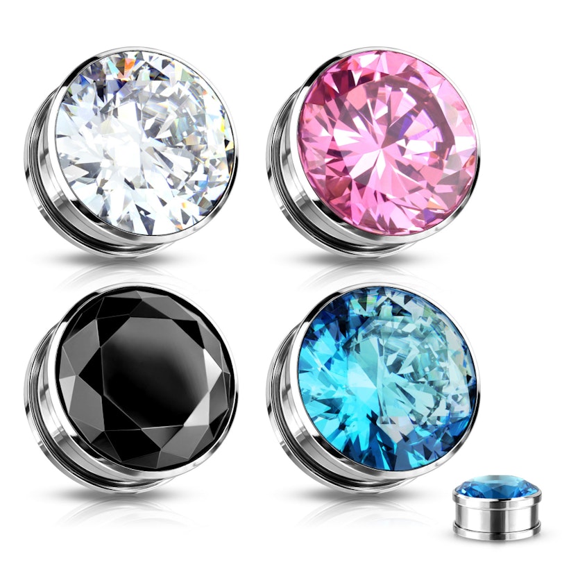 Dieser Plug wurde aus Chirurgenstahl gefertigt und ist in vier verschiedenen Farben und vielen Größen erhältlich. Auf der Vorderseite sitzt ein schöner, großer, diamantenförmiger Stein in einer wirklich schönen und kräftigen Farbe, die selbst bei der kleinsten Größe ins Auge fällt. Dieser Plug wird auf der Rückseite mit einem Schraubgewinde verschlossen, so daß es wirklich einfach ist, diesen Plug einzusetzen. Auch vom Gewicht ist dieses Schmuckstück angenehm zu tragen.