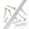 Dieses Labret ist in zwei Materialien erhältlich: 14 Karat Weißgold und 14 Karat Gelbgold. Außerdem haben beide Modelle eine Stärke von 16g (1,2mm), und sind in verschiedenen Längen erhältlich. Das Loch in der Stange ist das gleiche, egal welche Dicke oder Stärke du wählst.
