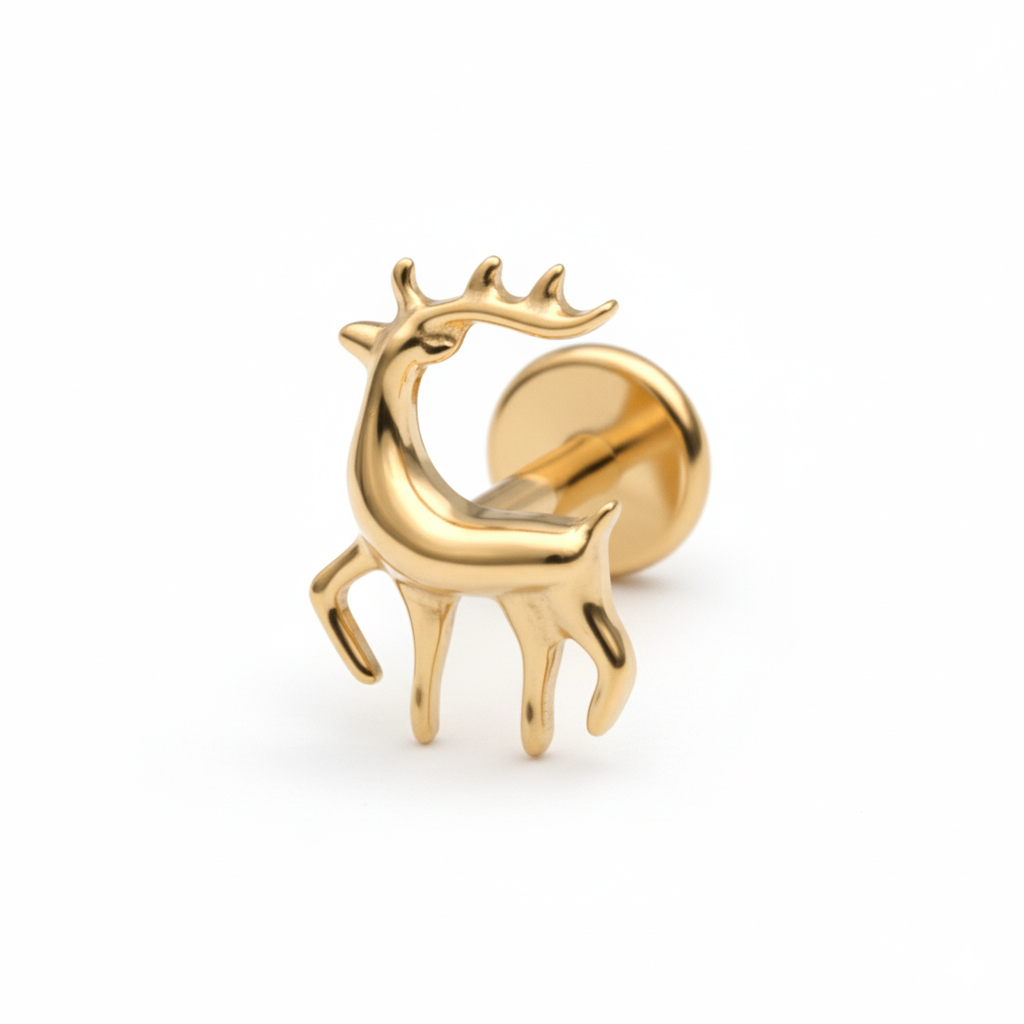 Dieses Rentier-Labret aus Titan bringt eine Prise Weihnachtsmagie in deine Ohrschmuck-Kollektion. Sein Design erinnert an ein Rentier in Bewegung, wie ein leiser Hinweis auf warme Lichter, ruhige Abende und die unbeschwerte Freude zum Jahresende, die einfach zeitlos bleibt.