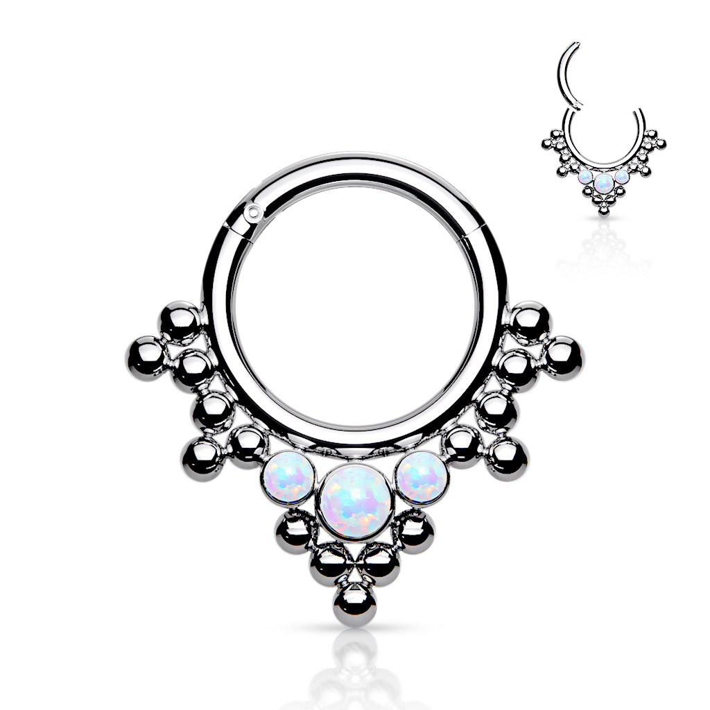 Name: Ring mit Scharnier aus Titan mit gebündelten Perlen und Opalen