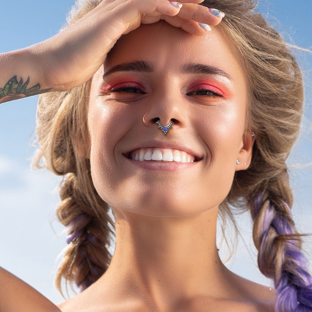 Dieser Ring hat einen Durchmesser von 8 mm und eine Stärke oder Dicke von 1,2 mm. Daher passt er für die meisten Ohrlöcher sowie für das Septum. Wenn du andere Piercings mit passenden Maßen hast, kannst du den Ring auch dort verwenden. Der Ring besteht aus Titan und kann daher auch in brandneuen Piercings verwendet werden.