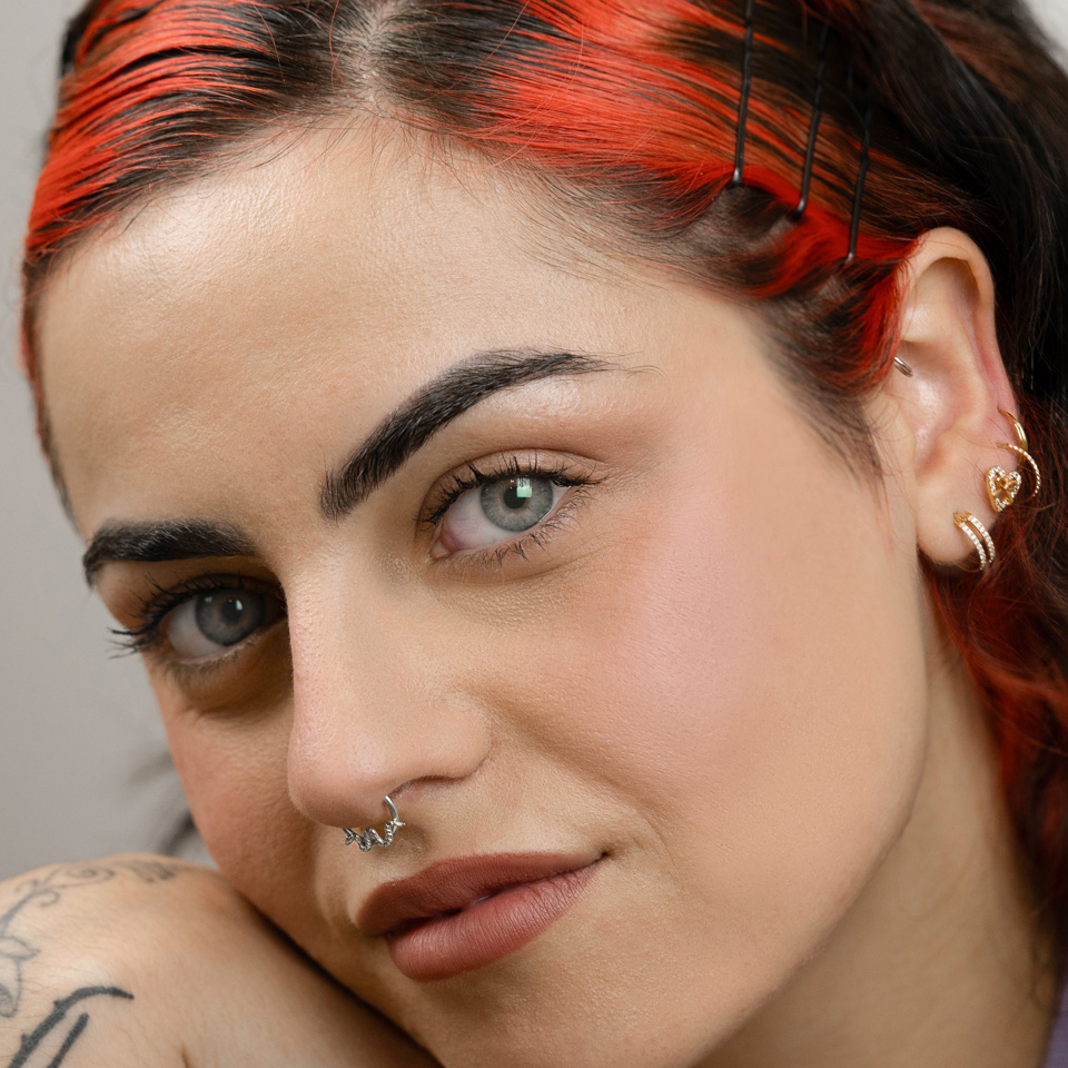 Scharnierringe sind eine praktische Schmuckwahl bei Ohrpiercings, vor allem bei Tragus-, Antitragus- und Rook-Piercings, wo der Platz minimal ist. Der Scharnierring hat keine abnehmbaren Teile, und der Mechanismus ist mühelos zu bedienen. Ziehe einfach das kleine Klappsegment auf, stecke den Ring in das Piercing und schließe es, indem du das Segment wieder einrastest. Dieser Ring besteht aus G23-Titan, dem reinsten Material für Piercing-Schmuck. Du kannst Titanschmuck sogar bei neuen Piercings verwenden, und er ist die beste Wahl für alle, die unter einer Nickelallergie leiden.