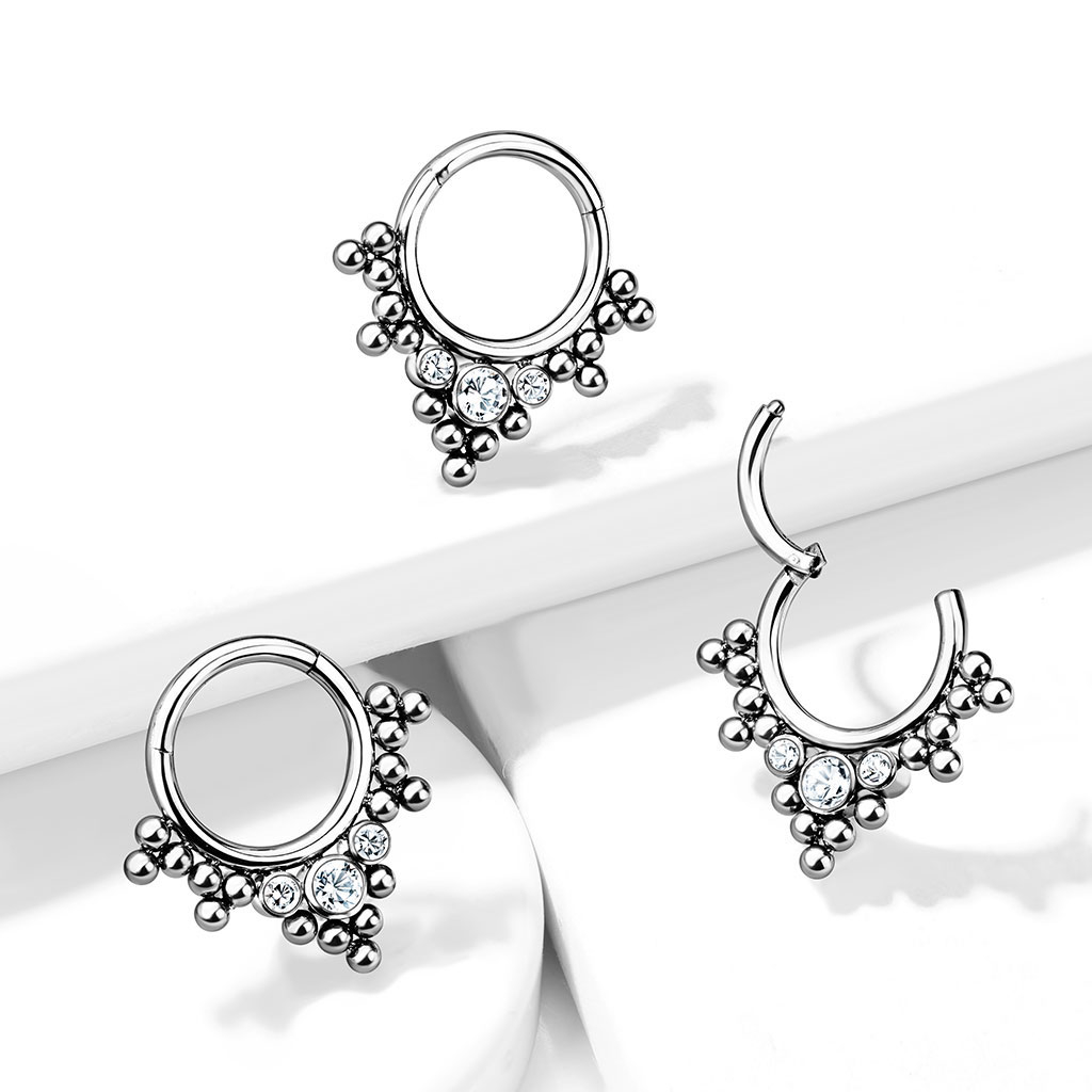 Name: Scharnierring aus Titan mit gruppierten Perlen und Steinen