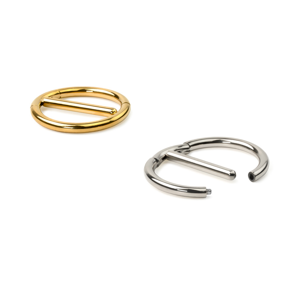 Dieses Schmuckstück ist wahrscheinlich das benutzerfreundlichste Brustwarzenpiercing, das es gibt! Öffne einfach den Ring, stecke den Stab in dein Piercing und schließe den Ring um die Brustwarze. Das nicht abnehmbare Scharniersegment macht sowohl das Einsetzen als auch das Entfernen zu einem Kinderspiel. Wir sind Hals über Kopf in dieses Produkt verliebt - und du?