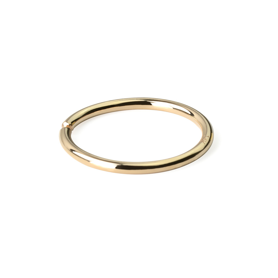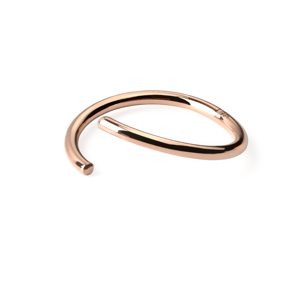 Keep it simple, ist genau das, was dieser Piercingring signalisiert, wenn man ihn in seinem Piercing trägt. Der Ring wurde nicht mit einem Schließmechanismus versehen, wie z.B. einer Kugel, einem Scharnier oder anderen Dingen. Der Ring besteht auschließlich aus einem Stück 14 Karat Gold, das zu einem kreisrunden Ring geformt wurde, jedoch mit einer kleinen Öffnung an einer Seite, so daß man den Ring auf jeden Fall in und aus derm Körper bekommen kann. Wir haben alles dafür getan, damit die Öffnung so klein wie möglich ist, also ist der Abstand zwischen Enden sogar noch ein wenig kleiner als auf dem Bild zu sehen ist. Der Abstand auf dem Bild ist extra dafür gedacht, damit man sehen kann, daß ein Abstand vorhanden ist. Denn wenn du den Schmuck in den Händen hältst, kannst du vielleicht im ersten Moment nicht sofort sehen, daß es eine kleine Öffnung gibt.