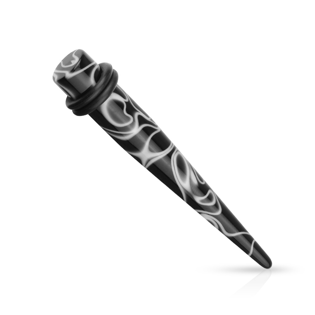 Dieser Taper wurde aus Acryl hergestellt und mit zwei O-Ringen versehen, damit der Taper an seinem Platz bleibt. Man benutzt diesen Taper als Werkzeug fürs Stretching, indem du ihn langsam nach und nach in dein Ohrloch schiebst, bis er komplett durch ist. Du musst diesen Vorgang sehr langsam und behutsam machen, da dein Ohr sonst kaputt gehen kann.
