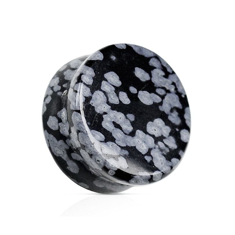 Dieser Plug hat ein unglaublich komplexes Design. Snowflake Obsidian ist eine ganz spezielle Unterart von dem Stein Obsidian, einer vulkanischen Steinart. Der Plug wurde zu 100% aus dem massiven Snowflake Obsidian hergestellt, aber keine Angst, das Gewicht dieses Steines ist sehr gering.