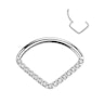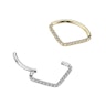 Lust auf Glitzer und Glanz? Hier bist du an der richtigen Adresse. Dieser wunderschöne Ring hat ein zeitloses Chevron-Design, bei dem der abgewinkelte Teil mit klaren Zirkoniasteinen besetzt ist. Der gebogene Teil, der in das Piercing gesteckt wird, sorgt natürlich für optimalen Tragekomfort. Dieser Ring verleiht dir die perfekte Prise Glamour, ein garantierter Blickfang.
