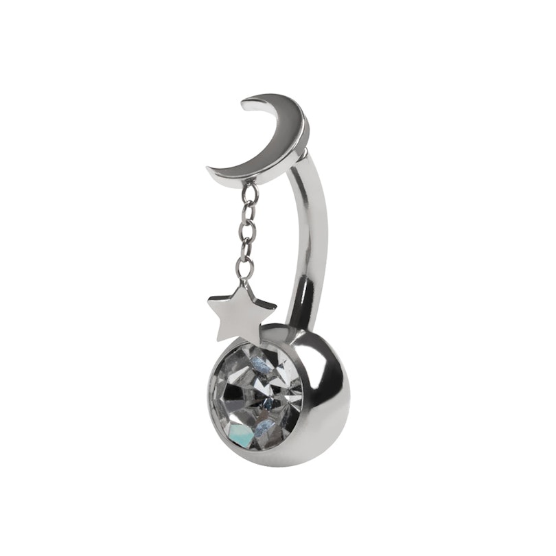 Name: Titan-Bauchnabelring mit schwebendem Mond und Stern