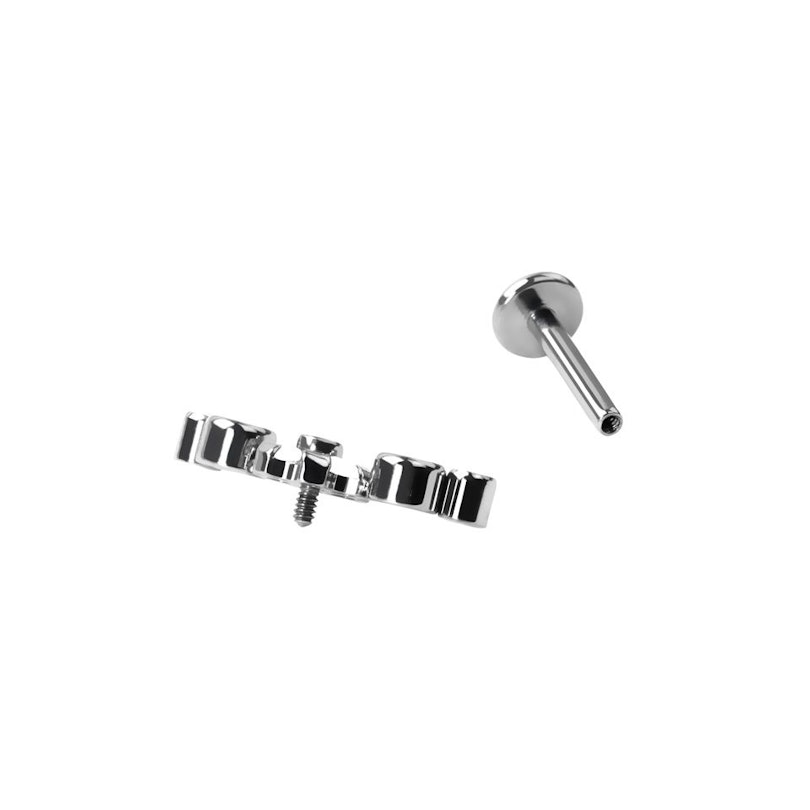 Dieses Labret besteht aus Titan, einem der beständigsten und am häufigsten empfohlenen Materialien für Piercings. Es hat ein Innengewinde, d.h. der Stift hat ein Innengewinde, An der Oberseite ist ein kleiner Gewindestab angebracht, der in den Stift geschraubt wird, um die Haut beim Einsetzen des Labrets in das Piercing vor Kratzen zu schützen.