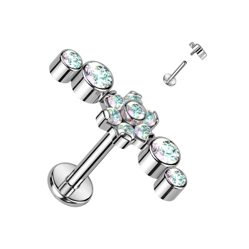 Titan-Labret mit Blume in der Mitte und CZ-Steinen