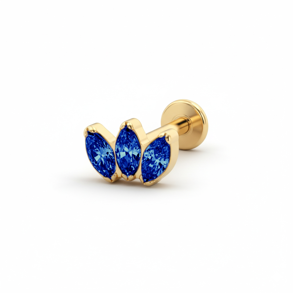 Das Titan-Labret mit drei Steinen in beliebiger Farbe beweist, dass selbst kleine Details deinen gesamten Look verändern können. Drei eingefasste Steine sitzen wie eine kleine Krone zusammen und verleihen deinem Ohr Struktur.