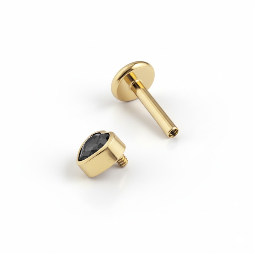 Es besteht aus Titan, ist also hypoallergen, wasserfest und beständig. Das Innengewinde sorgt für leichtes Einsetzen und sicheren Halt, so bleibt der Schmuck genau da, wo er hingehört. Dank flacher Rückseite eignet es sich für jeden Tag.
