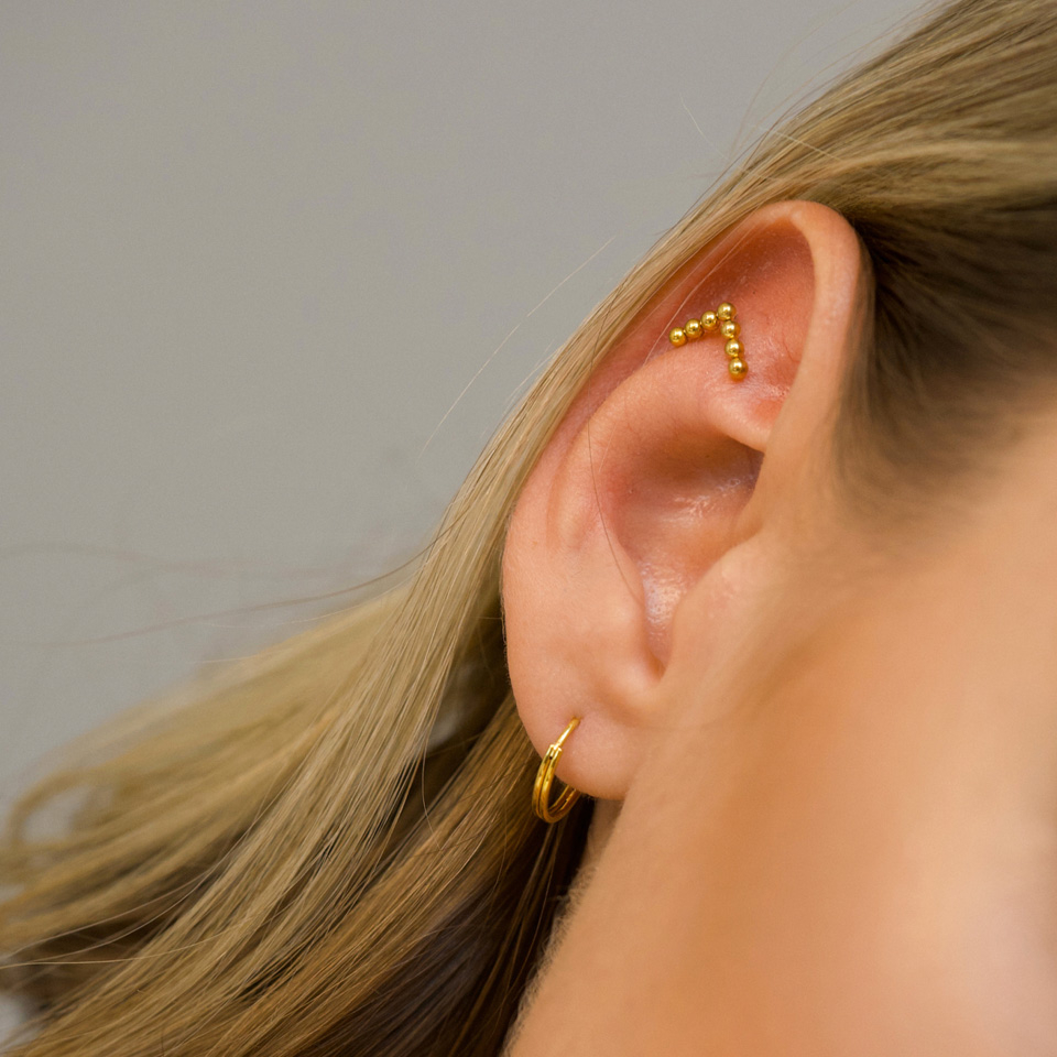 Dieses Chevron-Labret mit Perlen aus Titan sieht sehr schick aus. Das Chevron-Design besteht aus 7 Perlen, die jeweils 8mm messen. Die Seiten messen jeweils 7.8 mm. Der Schmuck ist in Farben Gold und Silber erhältlich.