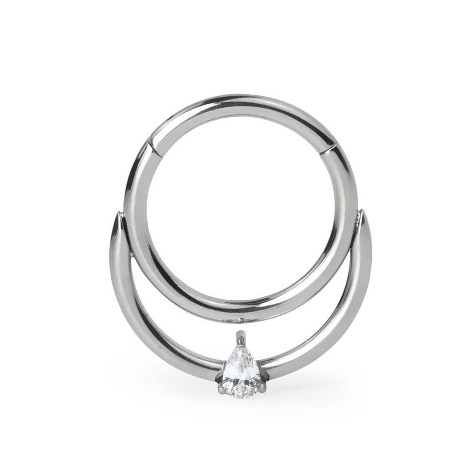 Name: Titan Scharnierring mit Doppelring und einem tropfenförmigen Stein