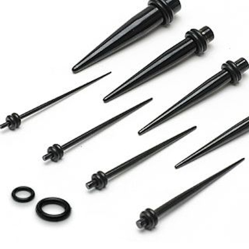 Diese Taper sind nämlich aus Chirurgenstahl gefertigt und haben eine schöne schwarze Titanschicht erhalten. Somit bekommst du hier ein Qualitätswerkzeug zum stretchen deines Ohres und du kannst bei einer Größe von 1,6 mm beginnen und bis 8 mm im Durchmesser fortsetzen.