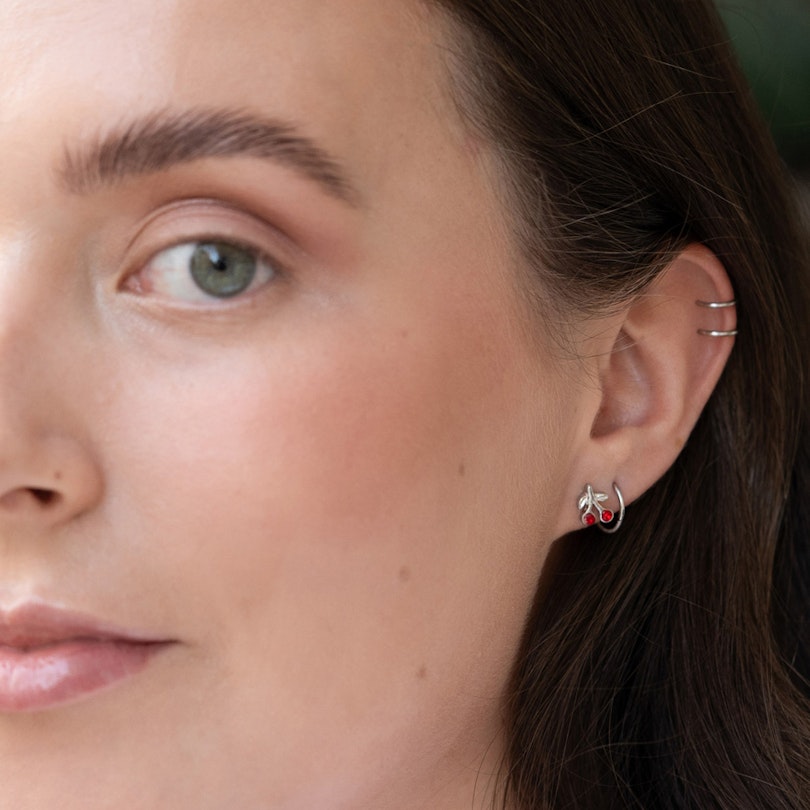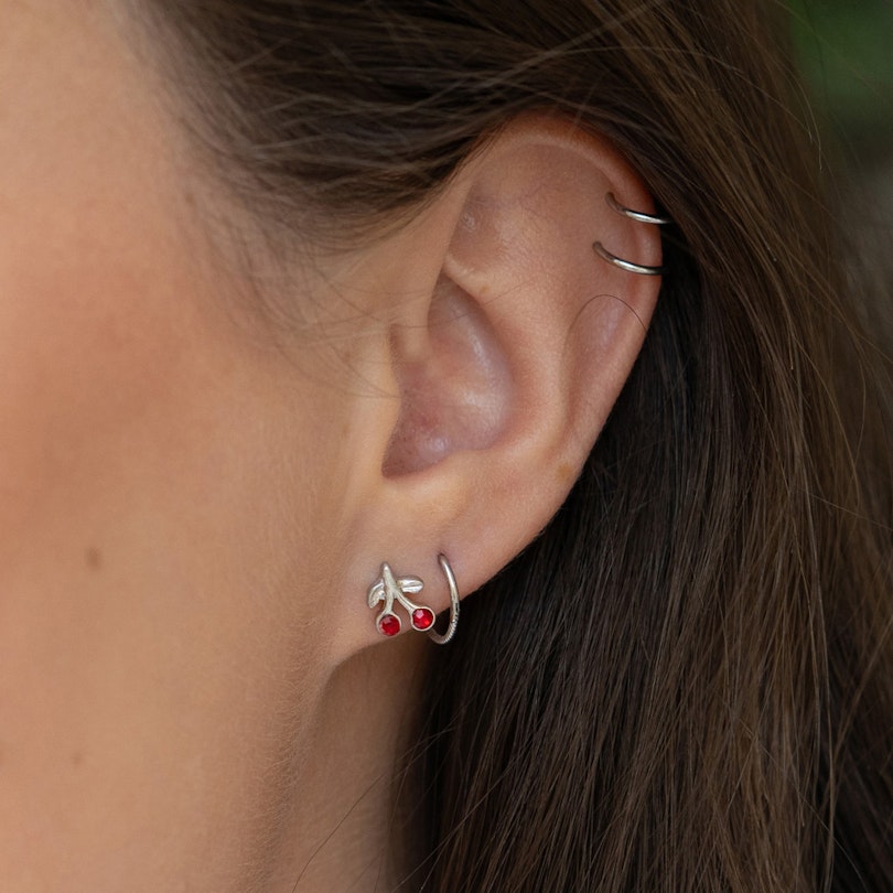 Tragusschmuck mit roten Kirschen