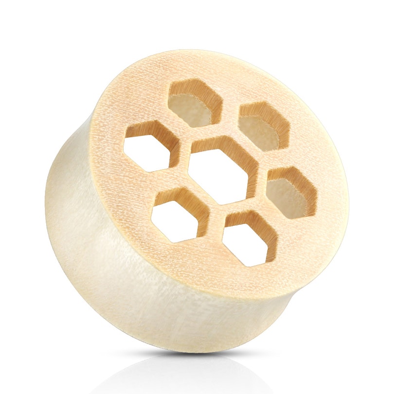 Der Schmuck ist mit ausgestanzten sechseckigen Muster versehen - insgesamt lassen sich sieben dieser Muster auf dem Tunnel finden. Das Design erinnert durch seine signifikante Form leicht an eine Honigwabe. Der Tunnel ist nicht für Anfänger geeignet, da die Größen nur von 10 mm bis zu 25 mm im Durchmesser reichen. Somit ist dieser Tunnel etwas, worauf sich Anfänger später freuen können.