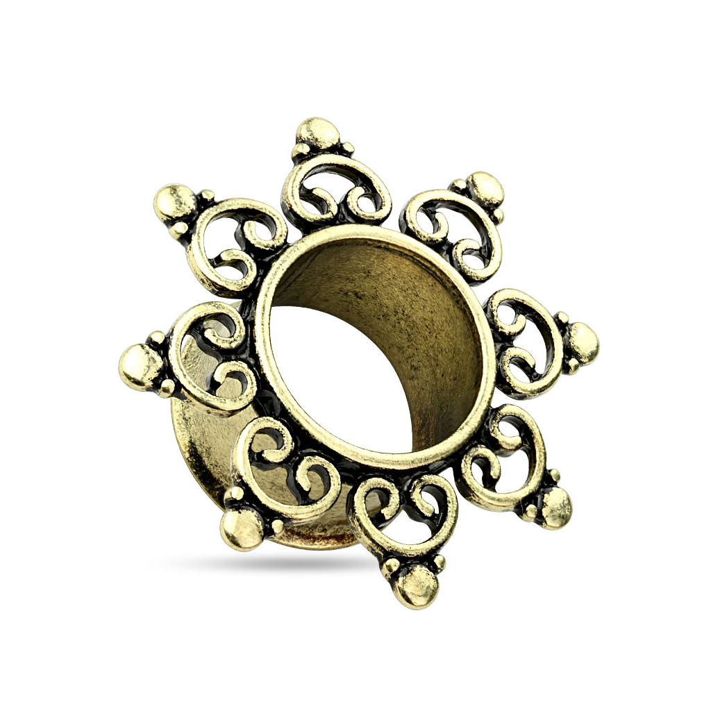 Jetzt hast du die Möglichkeit einen Tunnel in einem wirklich einzigartigen Design zu bestellen. Denn dieser super coole Tunnel ist mit einem wunderschönen Tribalmuster versehen, das sich entlängst der gesamten Tunnelkante zieht. Das Muster ist ganz speziell gefertigt, denn es ragt über die Kante hinaus und legt sich wie ein Rahmen um dein Ohrstretch, wenn der Tunnel im Ohr sitzt. So wird dein Stretch zum Zentrum des Designs.