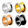 Unglaublich schönes Schmuckstück mit einer Steinkante, die durch eine spezielle Verarbeitung sicher in ihrer Fassung sitzt und selbst unter harten Belastungen nicht herausfällt. Das solide und starke Schraubgewinde wurde aus chirurgischem Stahl hergestellt, was es auch den Tragekomfort erhöht. Durch das Schraubgewinde ist auch die Handhabung sehr einfach, da dieses einfach vor dem einsetzen abgeschraubt wird und wenn der Tunnel an seinem Platz ist, wieder auf der Rückseite verschraubt wird.