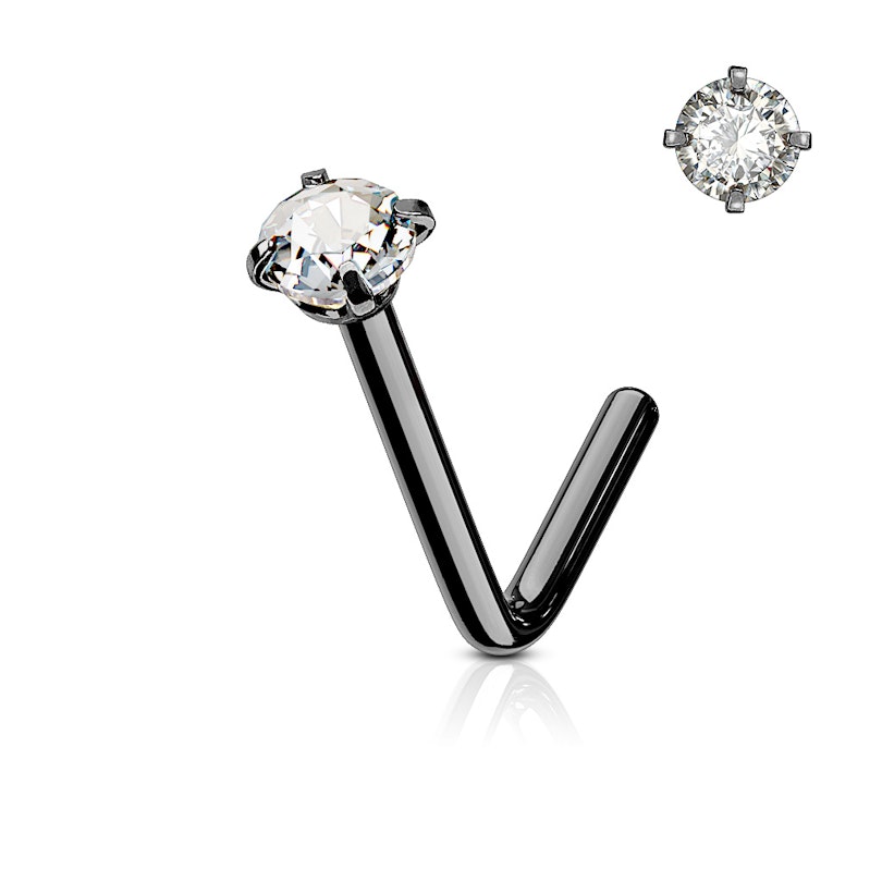 Das Nasenpiercing hat eine L-Form, aufgrund derer der Schmuck gut und fest in deiner Nase sitzt und nicht leicht herausfallen kann. Alle Versionen dieses Nasenpiercings haben die gleiche Größe und somit eine Stabstärke von 0,8 mm und eine Länge von 6 mm. Die Größe der Steine variiert je nach Modell zwischen 2,5 mm und 3 mm - das liegt daran, dass die Steine in verschiedene Formen geschnitten werden. Alle Modelle dieses Nasenpiercings sind aus Chirurgenstahl gefertigt.