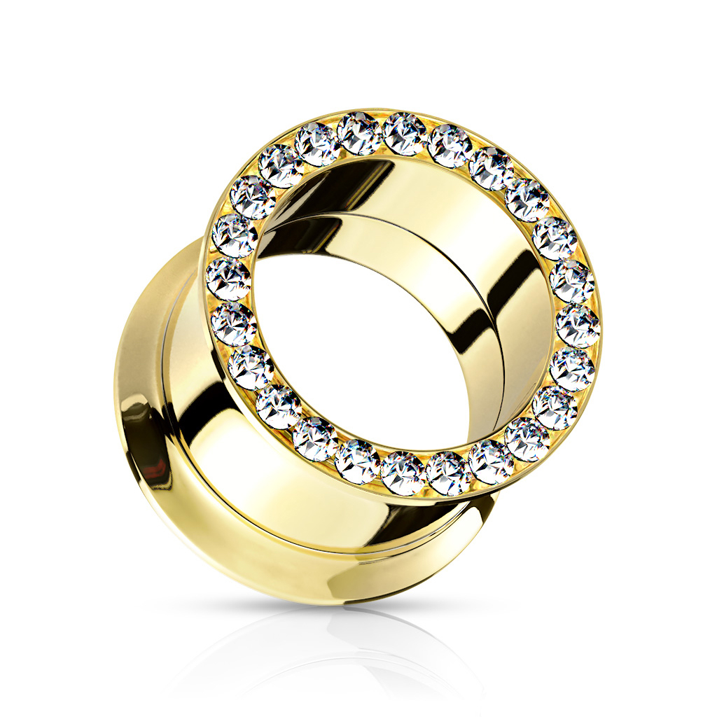 Dieser Tunnel ist aus vergoldeten Chirurgenstahl hergestellt und mit vielen klaren Steinen entlängs der Kante verziert.