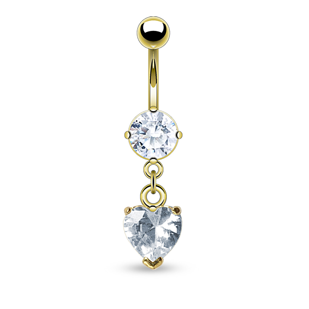 Name: Vergoldetes Bauchnabelpiercing mit Steinen und herzförmigen Anhänger