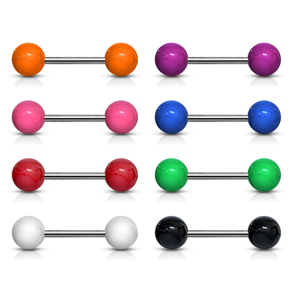 Name: Zungenpiercing aus Titan mit Acrylkugeln in verschiedenen Farben