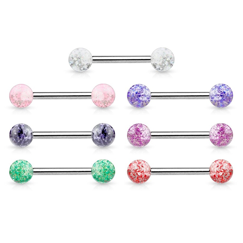 Name: Zungenpiercing aus Titan mit Glitzerkugeln