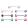 Zungenpiercing aus Titan mit Glitzerkugeln