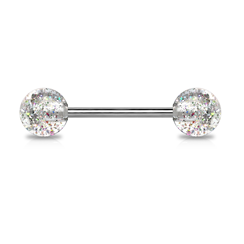 Zungenpiercing aus Titan mit Glitzerkugeln